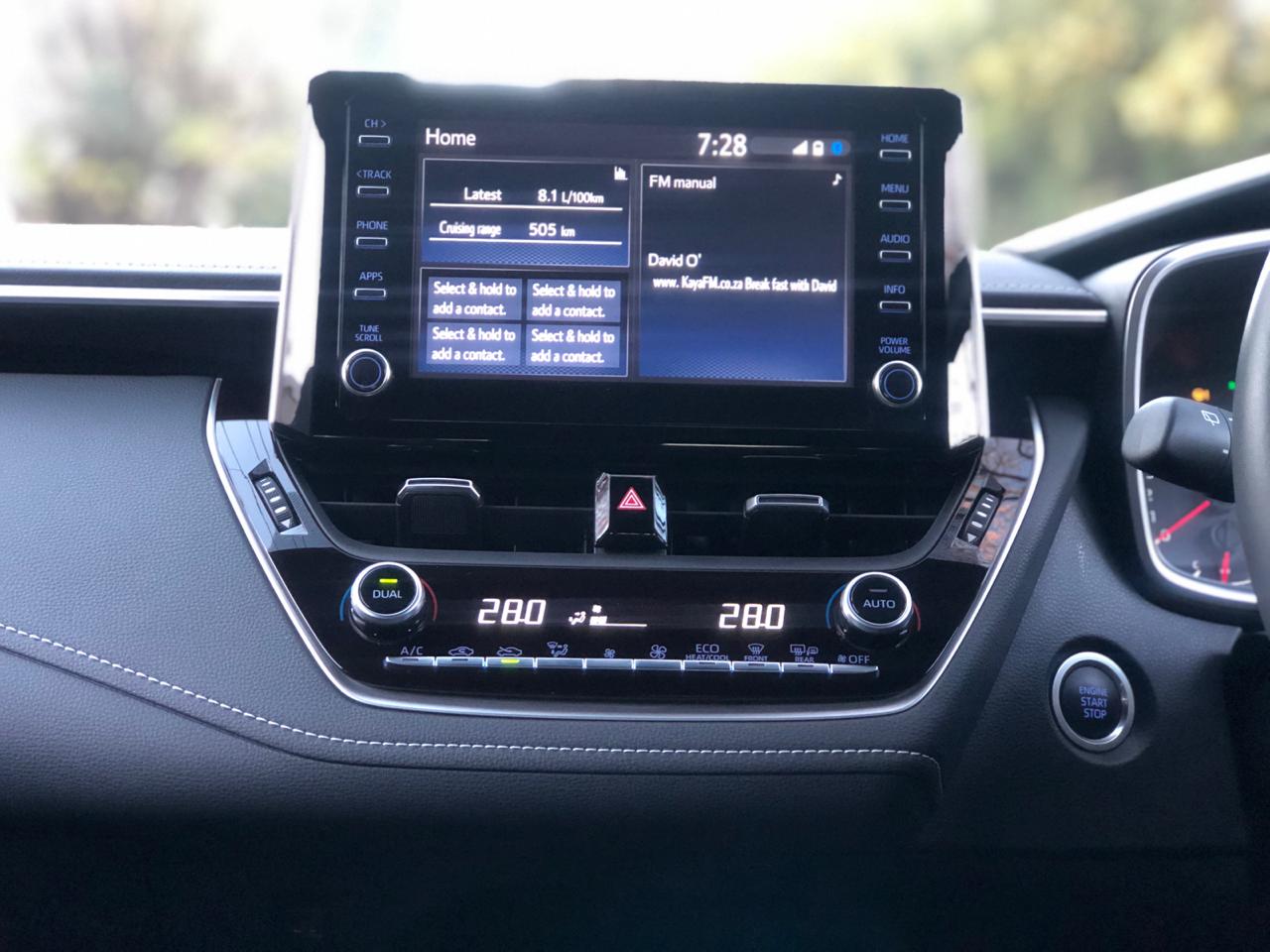 Enter the 1.2T XR CVT… and you’re greeted with touches of quality, style and luxury. The design theme is fresh and contemporary even though we feel the look and feel of the screen can be a bit better. I’ll touch on this later though. Overall interior is very good, a cut above actually. This includes the super comfortable alcantara seats in this range topping (at the time of writing) model. Speaking of range topping – this model gets the following features as standard on top of the already mentioned alcantara seats. It gets a rear view camera, LED headlights, heated front seats, key-less entry with a push-button start, dual-zone climate control and blind spot monitoring. All these features are optional in the VW Golf TSI Comfortline which is just shy of R23, 000 more than the 85kW 185Nm 1.2T XR which retails for R367, 100. This is testament to the value that Toyota is bringing to the table. All this made up for the screens let down. There is no android auto or apple car play. The screens look and feel can be a bit more modern and funky – but this is splitting hairs because you cannot fault it from a functionality point of view. It works and we did not encounter any glitches during out review period.