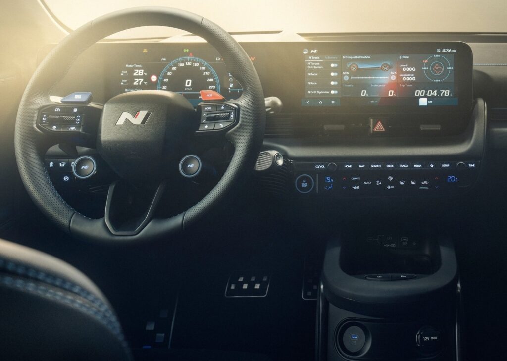 The boffins at Hyundai’s N division equipped the electric N model with a bunch of N bits and bobs like N Pedal, N Drift Optimizer and N Torque Distribution. What caught our attention is the N e-shift and N Active Sound+. N e-shift simulates the eight-speed dual-clutch transmission (DCT) of internal combustion engine (ICE) N cars. It simulates a gearshift by controlling motor torque output and simulates the jolt feeling between shifts creating an interactive driving experience.