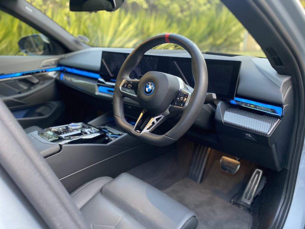 BMW claims an electric range of between 477-582 km but our time in the i5 we only managed 350km in full charge. It is a performance sedan after all and most of the time you are accelerating from traffic light to traffic light. So, you are unlikely to be economical but once that excitement has worn off you should be fine.