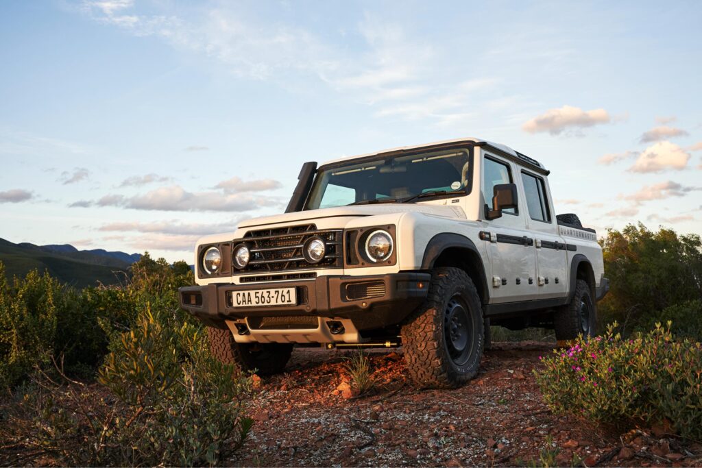 The Grenadier Quartermaster is based on the SUV version we’re used to. To add an extra touch of practicality, the bakkie version was a must from INEOS. The Quartermaster is available in three trims: Quartermaster, Trialmaster Edition, and Fieldmaster Edition. During our trip to the Eastern Cape to sample the bakkie, we had a chance to try the Quartermaster, which is quite bare compared to the other two derivatives that come with more standard features. Design-wise it’s got that retro look, like a Defender 130CC/Project Rhino but with modern touches. It’s definitely a head-turner wherever we drove it.